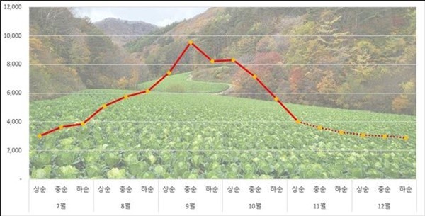 아울러 최근 도매가격도 하락세를 보이고 있어 김장철이 본격화되는 11월 이후에는 더욱 안정될 것으로 보인다.